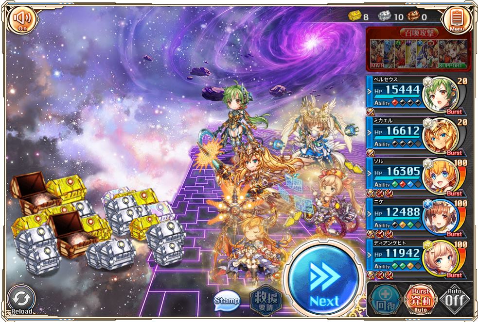 発動後味方全体のバーストゲージ+10。