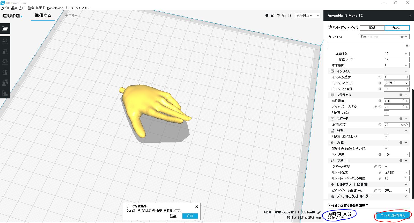 2-1.左上の ファイル > インポート >3Dモデルダータのあるファイル形式、stl(.stl)などを選択してメッシュデータを読み込みます。
