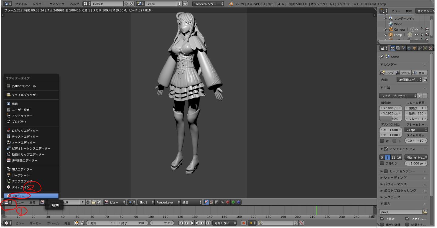 ここでの作業は blender 2.79 日本語化したインターフェイス前提で進めていきます。