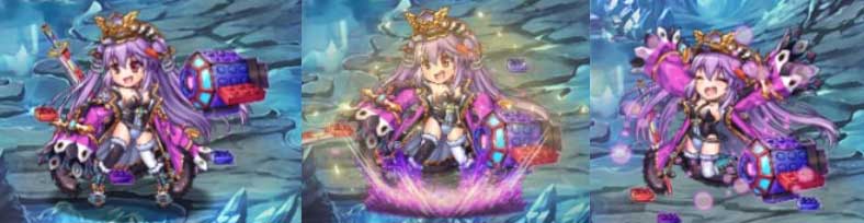 長い手数アップのバフ、効果時間が短いが強力な防御デバフ30%、ターンの終わりにバーストゲージアップと攻撃のかなめになる神姫です。