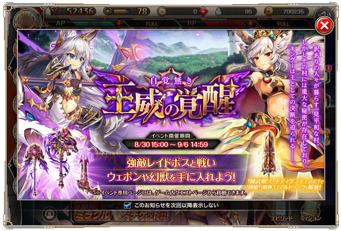 しばらくはガチャの当たり待ちでイベントを消化していく毎日だと思います。