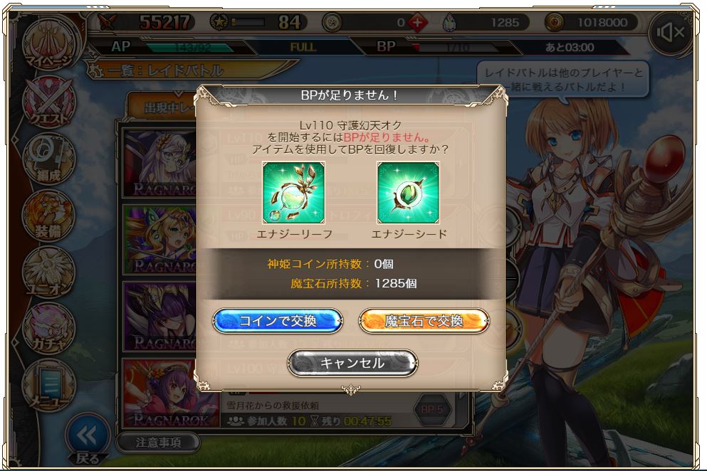 また参戦にはBPを消費しますのでエナジーシードが必要になります。